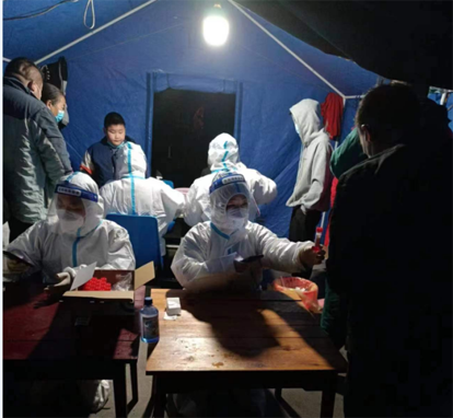 服務暖人心。王喜文、廖明明、姜軍等人主要負責的是協(xié)助社區(qū)工作人員做好核酸采樣的秩序維護。他們下沉的社區(qū)由于周邊小區(qū)較密集,核酸檢測點基本上日均檢測人數(shù)都超過5000人次,為了維護好現(xiàn)場秩序,快速篩查全員核酸,確保不漏一人,幾位黨員同志紛紛戴上紅袖章,穿上紅馬甲,奔向排隊的人群中,提醒大家戴好口罩,間隔一米以上,不隨地吐痰,不亂丟垃圾,主動攙扶行動不便的老人,制止插隊等不文明行為。他們的身影在核酸采樣點來回奔波,成了現(xiàn)場一抹暖人心的紅。