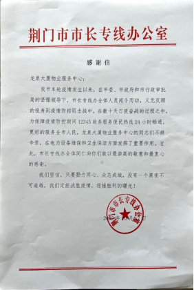 感謝信中,市長專線辦充分肯定了龍泉大廈物業(yè)服務(wù)方金盛物業(yè)公司的良好表現(xiàn),指出該公司積極響應(yīng)市疫情防控指揮部號召,不講條件、不提困難、聞令而動,全力調(diào)集人員和物資為龍泉大廈提供服務(wù)保障,全員晝夜堅守防控一線,在抗擊疫情的關(guān)鍵時刻迎難而上,在電力設(shè)備維保和衛(wèi)生保潔方面發(fā)揮了重要作用,以高度的社會責(zé)任感承擔(dān)了疫情防控社會責(zé)任。