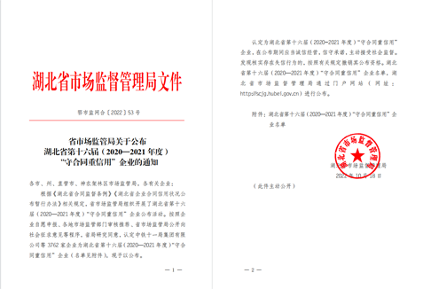 近日,省市場監(jiān)管局對2020-2021年度全省“守合同重信用”企業(yè)進行公示,中房集團荊門公司順利通過最終評審,獲評該榮譽稱號。這是該公司繼獲得2018-2019年度全省“守合同重信用”企業(yè)榮譽后,再次蟬聯(lián)該榮譽,彰顯了該公司多年堅持守法經(jīng)營、誠信履約、深入推動信用建設(shè)所取得的重大成果。(文:李弦)