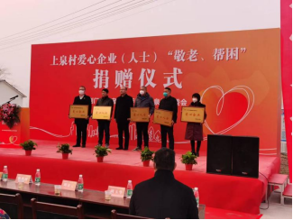 為弘揚(yáng)中華民族敬老愛(ài)老、扶危濟(jì)困的傳統(tǒng)美德,近日,城控窯灣建材公司參加了上泉村第六次愛(ài)心企業(yè)(人士)“敬老?幫困”捐贈(zèng)儀式。