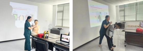 培訓(xùn)過(guò)程中,老師通過(guò)理論知識(shí)、現(xiàn)場(chǎng)演示、操作實(shí)踐等形式,逐一講解了心肺復(fù)蘇術(shù)、氣道梗阻急救法、觸電后急救方法以及AED的使用等急救知識(shí)和技能,并現(xiàn)場(chǎng)實(shí)操成人心肺復(fù)蘇急救法和氣道異物梗塞急救方法。