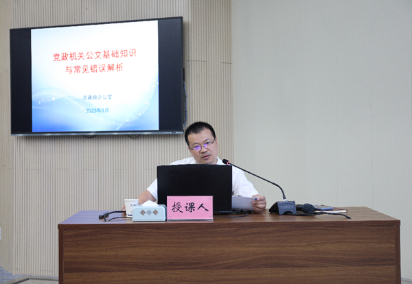 活動(dòng)分四個(gè)環(huán)節(jié)進(jìn)行。首先開展公文寫作培訓(xùn),市政府文秘科科長宋孝華以《黨政機(jī)關(guān)公文基礎(chǔ)知識與常見錯(cuò)誤解析》為題,圍繞黨政機(jī)關(guān)公文特點(diǎn)、編排規(guī)則與常見錯(cuò)誤等進(jìn)行專題輔導(dǎo)。隨后,集中收看《暢通工程?“荊”天辦》欄目。接著,傳達(dá)學(xué)習(xí)省委書記王蒙徽和市委書記胡亞波近期講話精神。最后,開展“天天三分鐘 精神記心中”黨員教育線上學(xué)習(xí)競答,評選出本期“學(xué)習(xí)之星”。