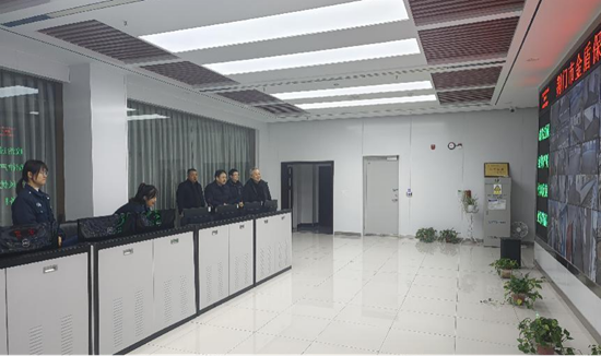 在金盾公司,肖德金一行查看監(jiān)控中心、尾箱庫等重點場地,仔細詢問了押運車輛運行、金庫管理、安全監(jiān)控系統(tǒng)運行等情況。