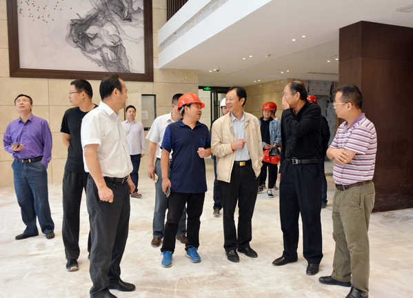 圖為市委常委、市政府黨組成員趙?。ㄓ胰┒睫k荊門生態(tài)科技產(chǎn)業(yè)城國際會展中心項目
