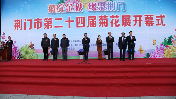 圖為市委常委、市政府黨組成員趙俊宣布菊花展開幕