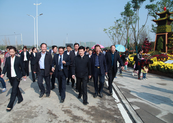 圖為市長張依濤、市委常委、市政府黨組成員趙俊一行參觀此次菊花展