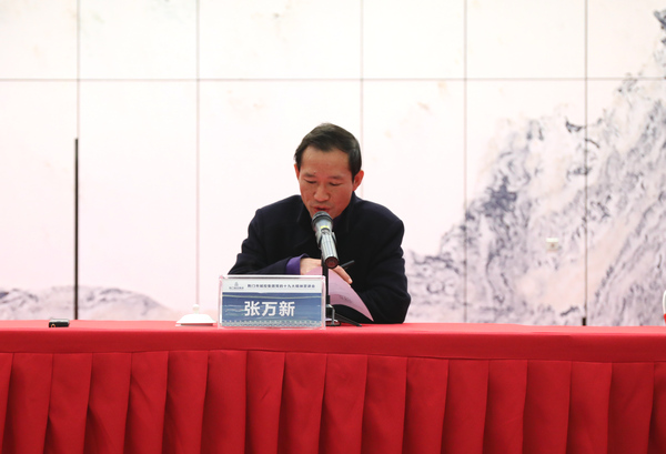 圖為市政府辦公室副主任張萬新宣讀市政府辦公室《關于市城控集團功能定位及組織架構的批復》