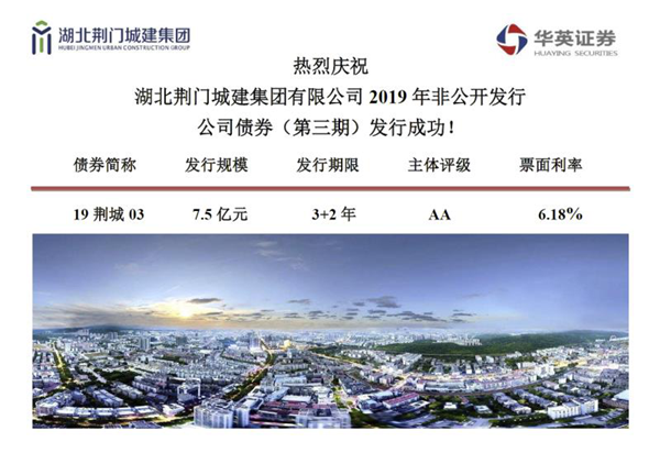 9月25日,荊門城控集團(tuán)所屬荊門城建集團(tuán)第三期非公開公司債7.5億元成功發(fā)行,至此,集團(tuán)20億元非公開公司債發(fā)行工作圓滿收官。本期債券為湖北省近20個月來地級市平臺公司首支3+2期限的非公開公司債券,且發(fā)行票面利率為6.18%,低于本月銀行間市場同評級同類債券14BP(基于WIND統(tǒng)計)。