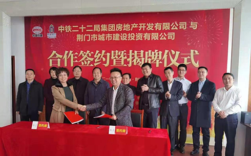 3月3日,中鐵二十二局集團房地產(chǎn)開發(fā)有限公司與市城控集團直屬子公司荊門市城市建設(shè)投資有限公司合作簽約暨揭牌儀式在荊門京琨置業(yè)有限責任公司舉行。市城控集團黨委書記、董事長杜佐鵬,中鐵二十二局集團地產(chǎn)公司黨委書記、董事長熊乾,市城控集團黨委委員、副總經(jīng)理兼市城投公司黨委書記、董事長魯愛群等相關(guān)人員參加。