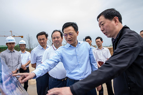 在項目現(xiàn)場,王祺揚一行實地察看了園區(qū)工程建設及周邊配套基礎設施建設推進情況,仔細詢問了項目建設、景觀綠化種植進展及項目推進中存在的困難等情況,并現(xiàn)場聽取了關于園區(qū)功能布局、項目建設進度、后期運營思路的匯報。