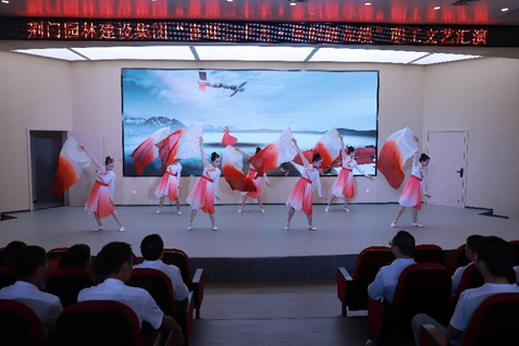 活動現(xiàn)場,舞蹈、朗誦、合唱、獨(dú)唱、三句半等形式多樣、內(nèi)容豐富的演出節(jié)目精彩紛呈,博得在座全體觀眾的熱烈掌聲。舞蹈《萬疆》《不忘初心》,合唱《如果有一天》,朗誦《與時代同向,與祖國同行》深切表達(dá)了對黨和祖國的無限忠誠與熱愛。情景朗誦《退伍不褪色,用軍魂建設(shè)園林》《園林建設(shè)者之歌》生動詮釋了園林建設(shè)者奮發(fā)有為、昂揚(yáng)向上的精神特質(zhì)。舞蹈《舞動園林》《美人吟》,三句半《夸夸咱公司》展現(xiàn)了層次多樣、健康向上的園林企業(yè)文化,贏得了現(xiàn)場陣陣掌聲和歡聲笑語。荊門本地知名歌手、國家一級演員李龍年老師帶來的《漳河岸邊是我家》進(jìn)一步升華了本次文藝匯演的藝術(shù)氛圍,氣勢恢宏的大合唱《歌唱祖國》將活動推向高潮。
