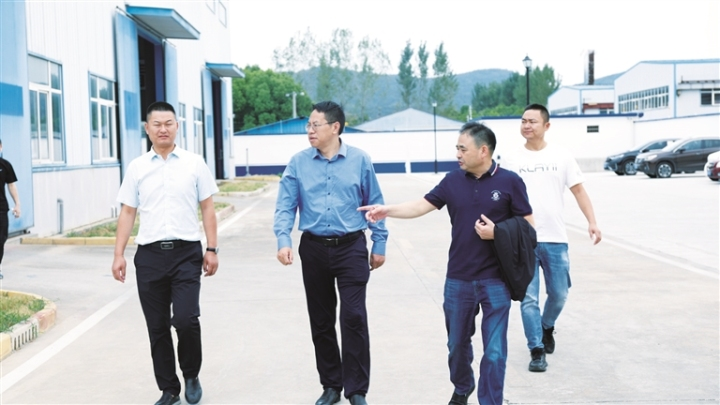 荊門城控集團黨委副書記、總經(jīng)理程雄(左二)調(diào)研金盾京山分公司經(jīng)營情況