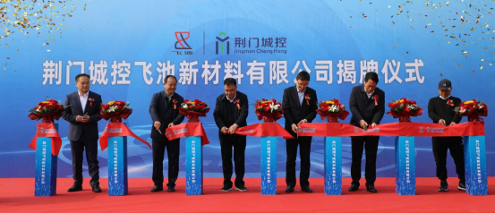 隨后,市政府國資委黨委書記、主任唐興杰,市政府國資委黨委員、副主任咼梅臨,荊門城控集團(tuán)黨委書記、董事長杜佐鵬,荊門城控集團(tuán)黨委副書記、總經(jīng)理程雄及合作股東代表共同為城控飛池新材料公司剪彩并揭牌。