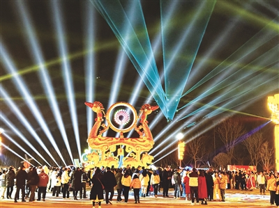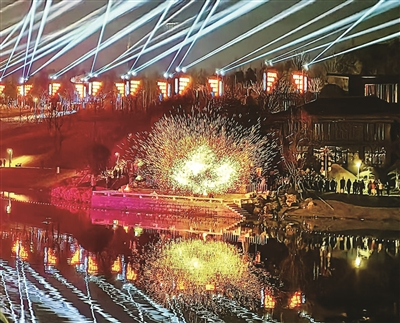從園區(qū)門口的《迎賓出行圖》到入口廣場(chǎng)的虎座鳳鳥鼓架,從非遺打鐵花到舞龍舞獅,園博園內(nèi),燈火通明,人頭攢動(dòng)。漫步其中,一步一景,一步一娛,整個(gè)園區(qū)雍容華貴、高雅大氣。