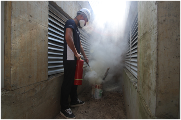 活動一開始,管廊公司管理人員講解了管廊消防安全知識,強調(diào)了管線入廊安全注意事項,演示了防毒面具、氣體檢測儀、對講機、干粉滅火器等器械的使用方法。隨后在綜合管廊內(nèi)部進行了消防應(yīng)急演練,模擬管廊內(nèi)部起火,管廊公司立即啟動應(yīng)急預(yù)案,疏散現(xiàn)場作業(yè)人員,并使用滅火器進行滅火。