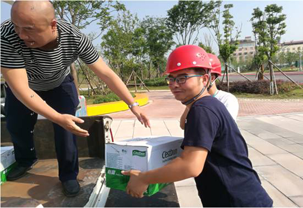 圖為公司為工人送防暑降溫物資