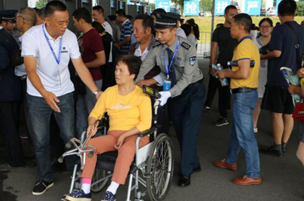 引導(dǎo)殘疾人士通過(guò)安檢綠色通道