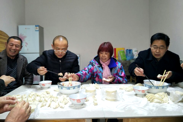 過了臘八就是年。1月15日上午,荊門市供水總公司黨委書記、總經(jīng)理陳永根帶領(lǐng)公司黨委班子成員,和荊門技師學(xué)院領(lǐng)導(dǎo)冒著寒風(fēng)來到結(jié)對扶貧村漳河新區(qū)漳河鎮(zhèn)雄峰村,慰問該村貧困戶,并與貧困戶一起包餃子,提前和貧困戶一起過新年。