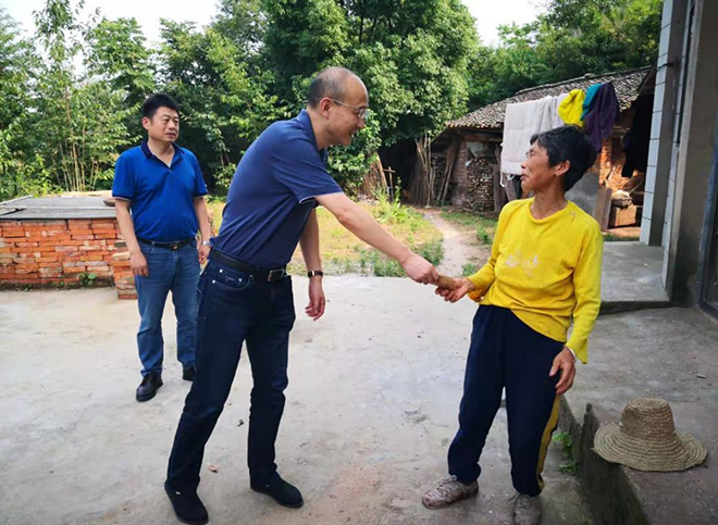 6月26日下午,陳永根帶領(lǐng)公司扶貧工作專班人員來到漳河鎮(zhèn)雄峰村,對該村貧困黨員林春進(jìn)行走訪慰問,并送去慰問金。在林春家,面對面交談、心貼心交流,詳細(xì)了解其家庭情況、身體狀況、生活開支等情況,認(rèn)真聽取生活困難和問題、今后的主要打算,并鼓勵他樹立信心,努力戰(zhàn)勝疾病和克服生活困難。當(dāng)日還走訪慰問了該村對口幫扶貧困家庭。