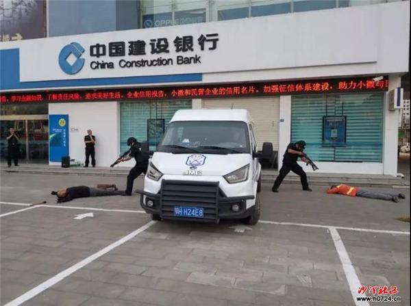 在新中國成立70周年到來之際,為進一步提高押運人員的安全防范意識和應(yīng)對突發(fā)事件的快速處置能力,營造平安祥和的金融環(huán)境,更好地保護銀行單位人員、資金安全,全力“保大慶保軍運”, 9月26日,沙洋縣公安局內(nèi)保大隊指導(dǎo)荊門市金盾保安服務(wù)有限公司沙洋押運分公司、中國建設(shè)銀行沙洋支行在建行沙洋開發(fā)區(qū)支行門口聯(lián)合開展了一場應(yīng)急反搶實戰(zhàn)演練。相關(guān)部門分管安保領(lǐng)導(dǎo)到場觀摩了演練。
